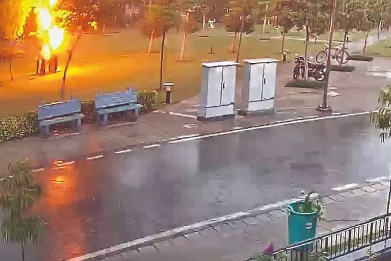 En las imágenes se ve como las víctimas se encontraban reunidas en un parque cuando comienza a llover, por lo que buscan refugio bajo un árbol. Pero de pronto un rayo impacta el lugar, justo donde estaban.