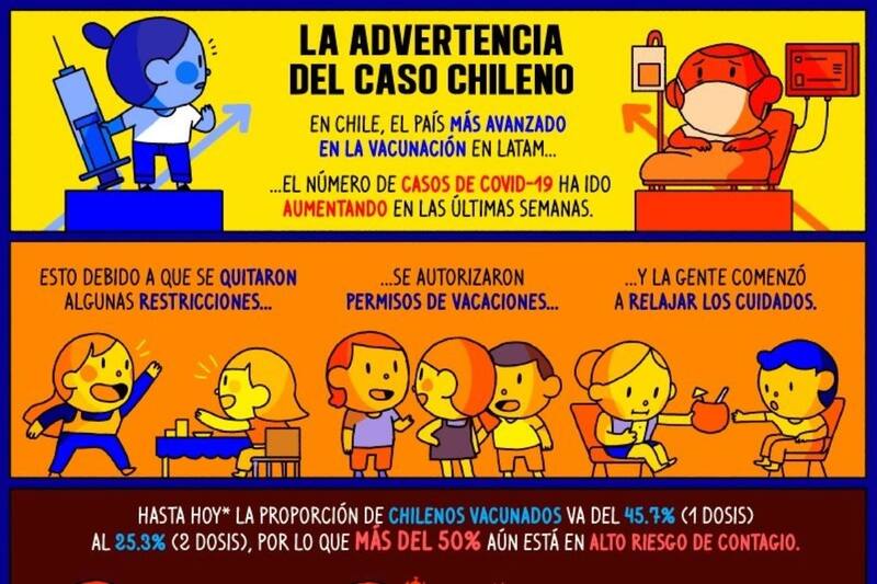 En la imagen, destacaron que aun cuando "Chile es el país más avanzado en la vacunación en Latinoamérica, hace varias semanas los contagios se han disparado".