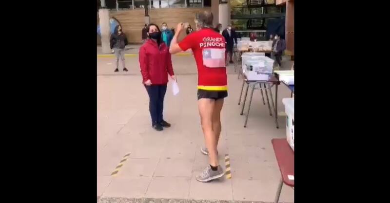 Un hombre mayor fue impedido de votar este domingo 16 de mayo, suceso que ocurrió en el Colegio Alcázar en la comuna de Las Condes. Esto pasó porque fue con una polera alusiva al dictador Augusto Pinochet, siendo que está prohibido utilizar ropa con mensajes políticos.