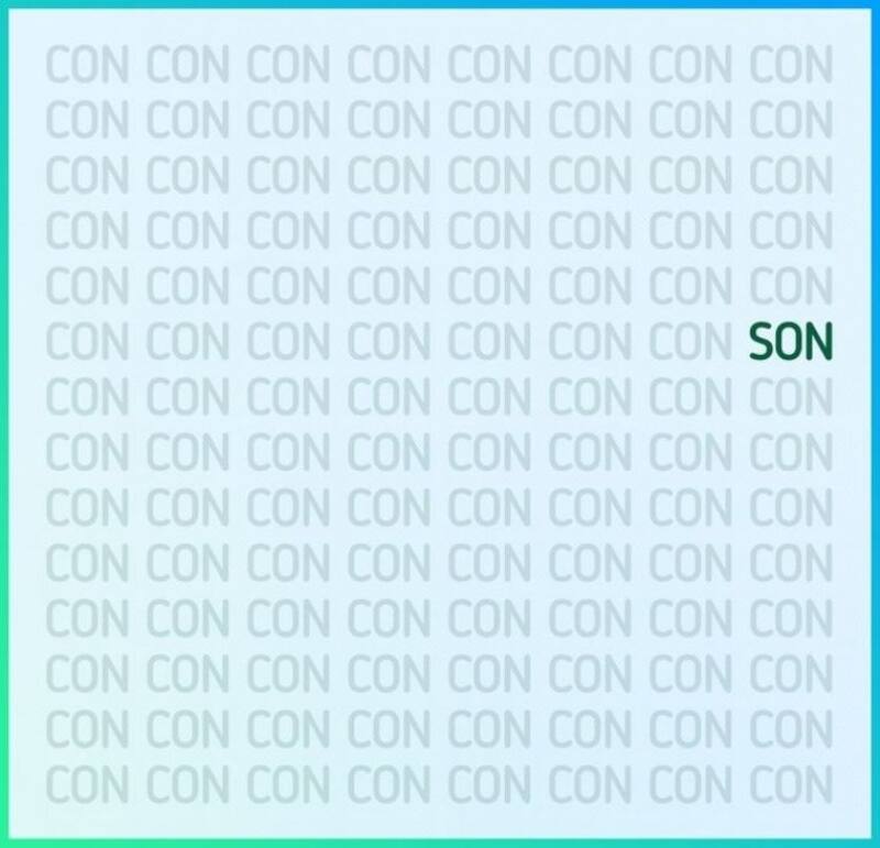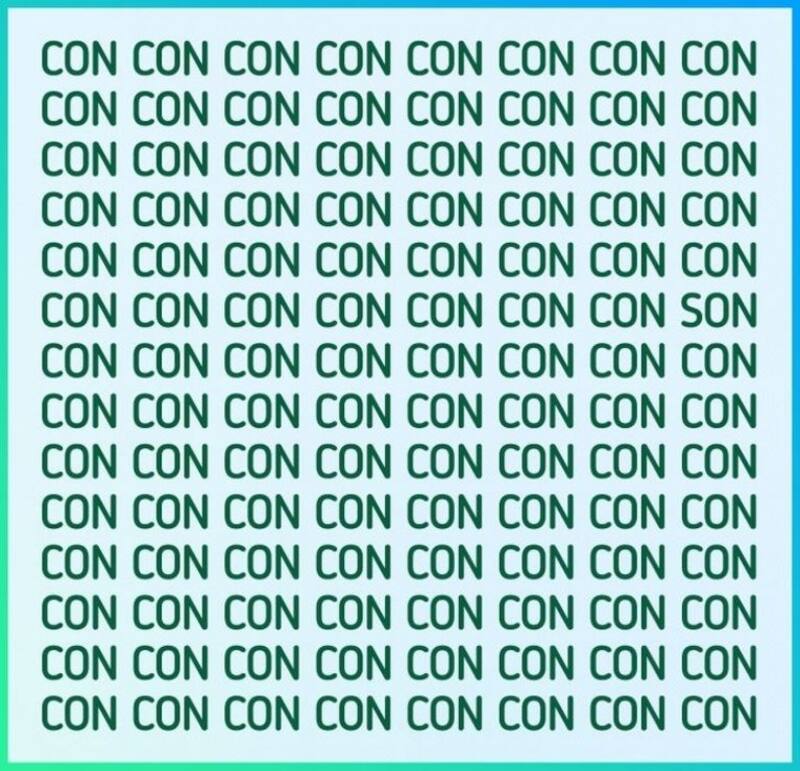 Por ello y como una forma de entretenimiento, te presentamos un nuevo reto. En la imagen, compartida por el portal Genial.Gurú, se puede observar una lámina repleta con la palabra "CON", pero dentro de ella hay una palabra "SON". El reto visual consiste en identificar dicha palabra en 30 segundos. ¿Puedes hacerlo?