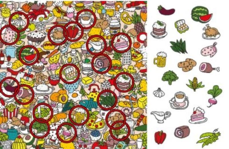 El reto de hoy consiste en encontrar 20 alimentos y bebidas que se encuentran camuflados en la imagen. Recuerda que solo los más concentrados lo logran.