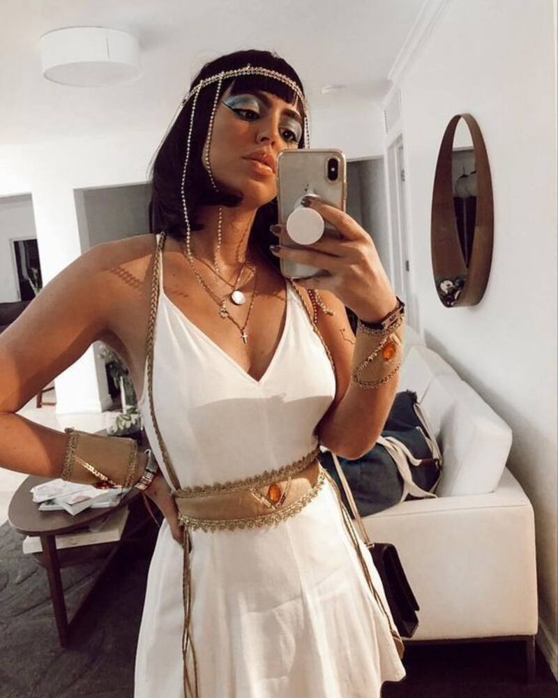 La reina egipcia es un clásico para Halloween y si bien su disfraz puede parecer más complejo, en realidad solo necesitas un vestido blanco y agregarle unos detalles dorados. Recuerda además su largo delineado, es un detalle que no se puede olvidar.