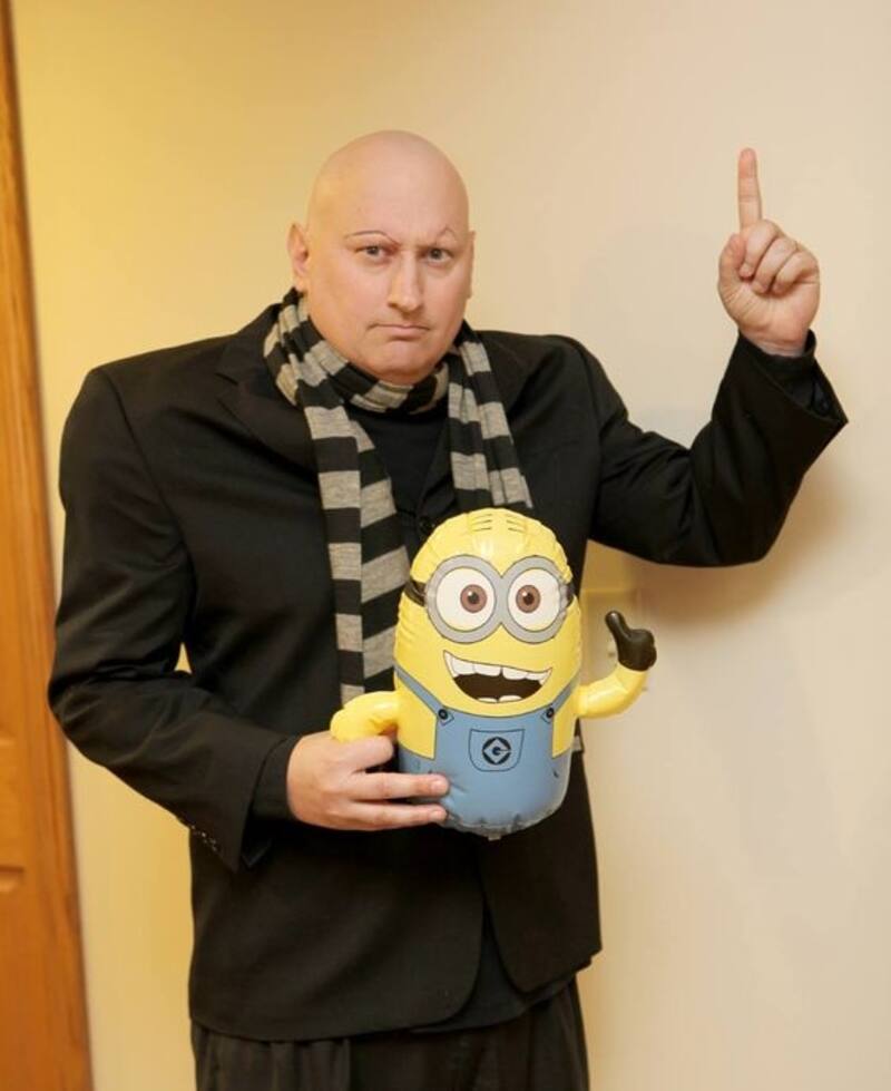Este personaje se ha vuelto uno de los padres animados favoritos de todos, y para crearlo, puedes hacerlo con un traje negro o gris y una bufanda a rayas. Si quieres sumarle algo más, busca a alguien que se disfrace de Minion contigo.