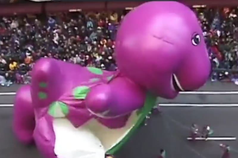 Y es que en redes sociales resurgió un video del Macy's Thanksgiving Day Parade de 1997, donde la versión globo de Barney pretendía conquistar a todos los niños y niñas presentes.