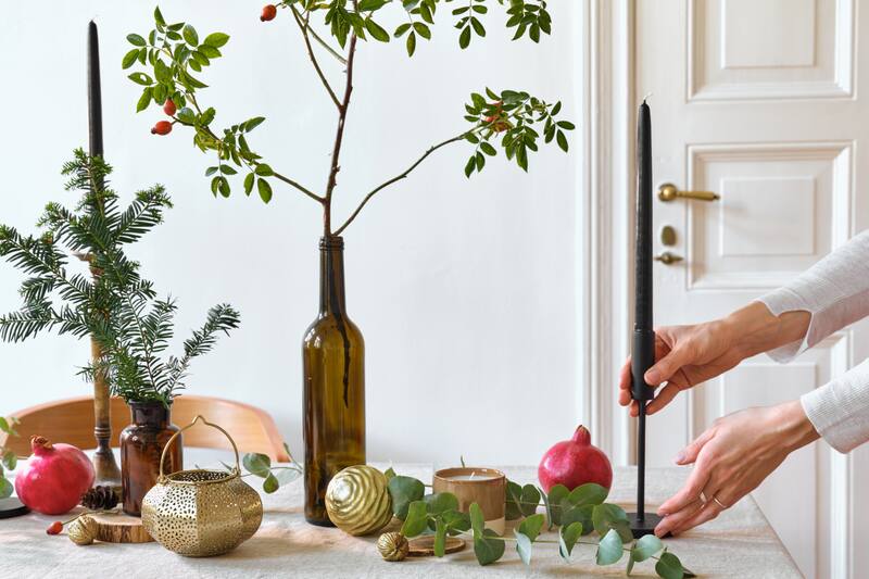 Ramas de pino en un florero: En lugar de flores, puedes hacer un arreglo ccon ramas de pino frescas para evocar la navidad.