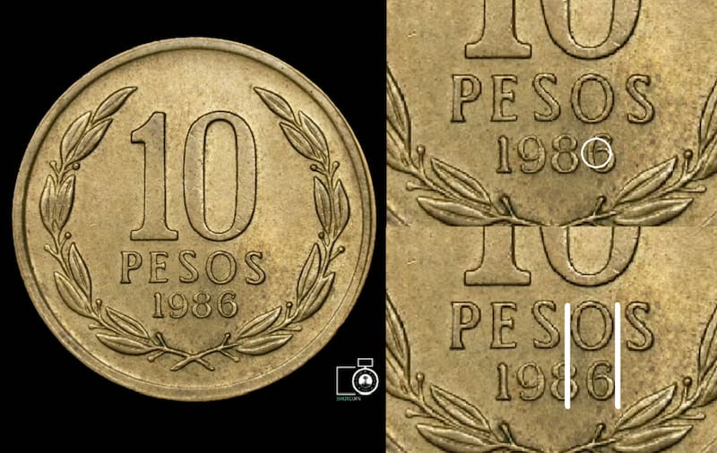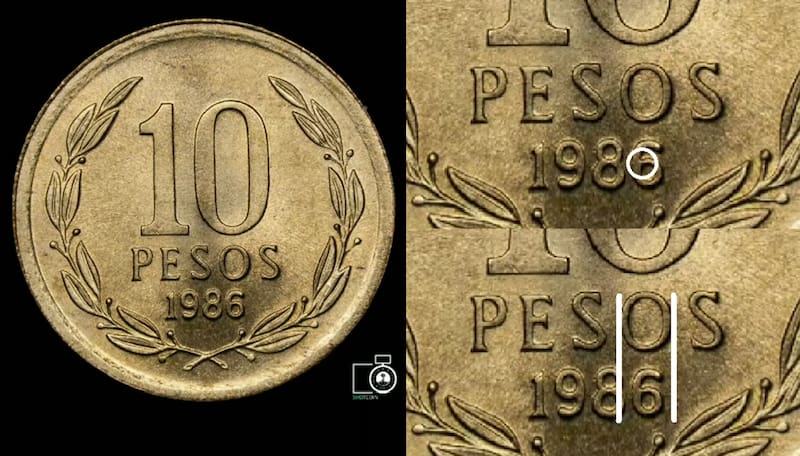 Moneda de 10 pesos de 1986 con variante "fecha angosta"