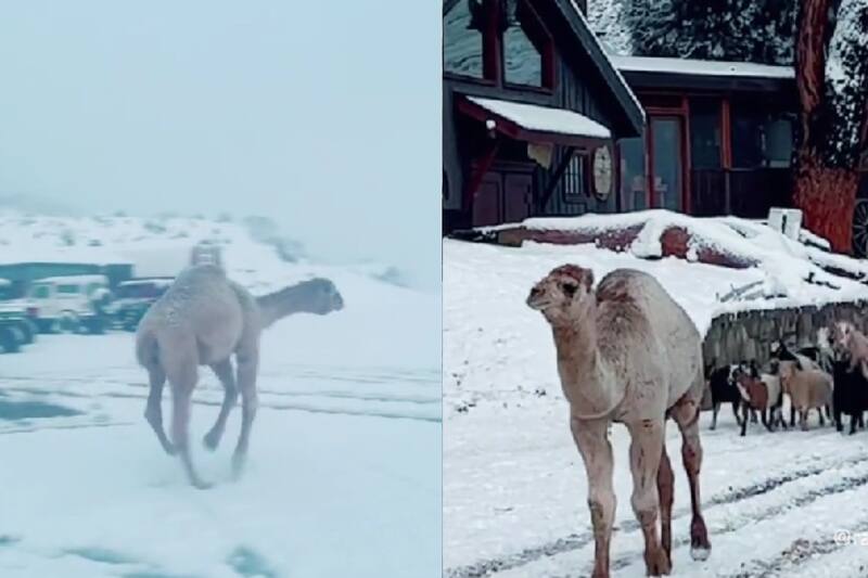En él vive Albert, un camello de seis meses, quien recientemente vio la nieve por primera vez, lo que lo hizo saltar de alegría. Es más, el pequeño parece guiar a un rebaño de cabras mientras se maravillaba con el clima invernal.