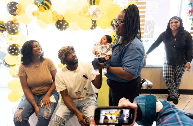 Días después del nacimiento de la pequeña, las personas que asistieron el parto de Alandria la invitaron a ella y su familia al local, ya que le habían organizado un baby shower para la pequeña Nandi.