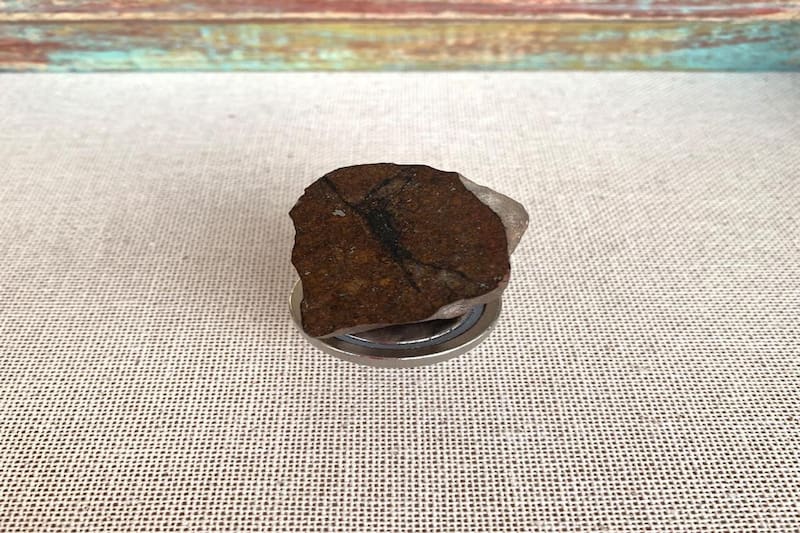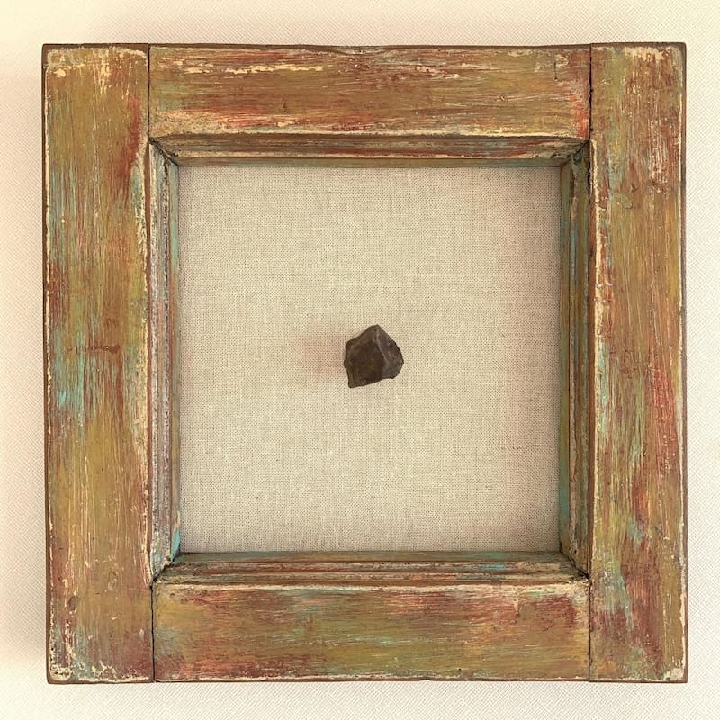 La pieza es vendida con un marco de madera y un imán que lo sostiene. Este imán también demuestra la calidad del meteorito, porque al añadirse a él comprueba que la piedra está compuesta, entre otras cosas, por hierro nativo que tiene gran magnetismo.