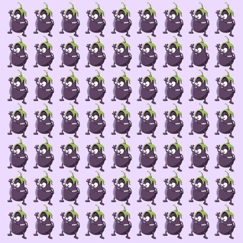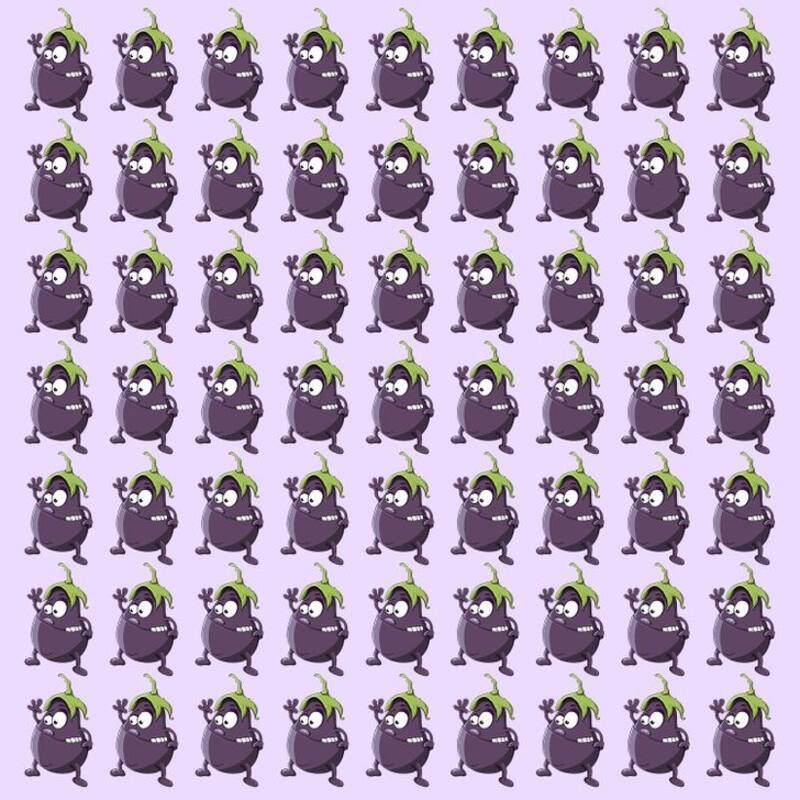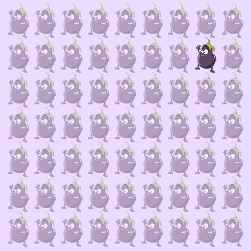 En la siguiente ilustración deberás hallar cuál es la berenjena que luce distinta a las demás. Si bien a simple vista todas se ven similares, si te fijas con atención te darás cuenta que no es así.