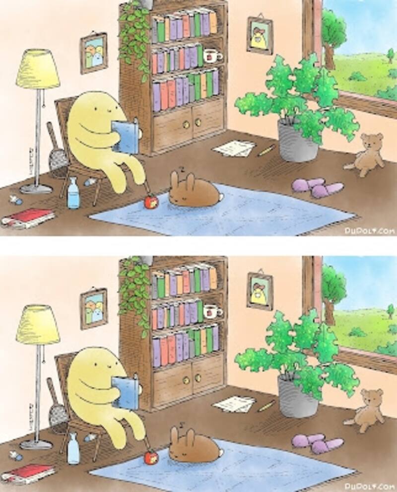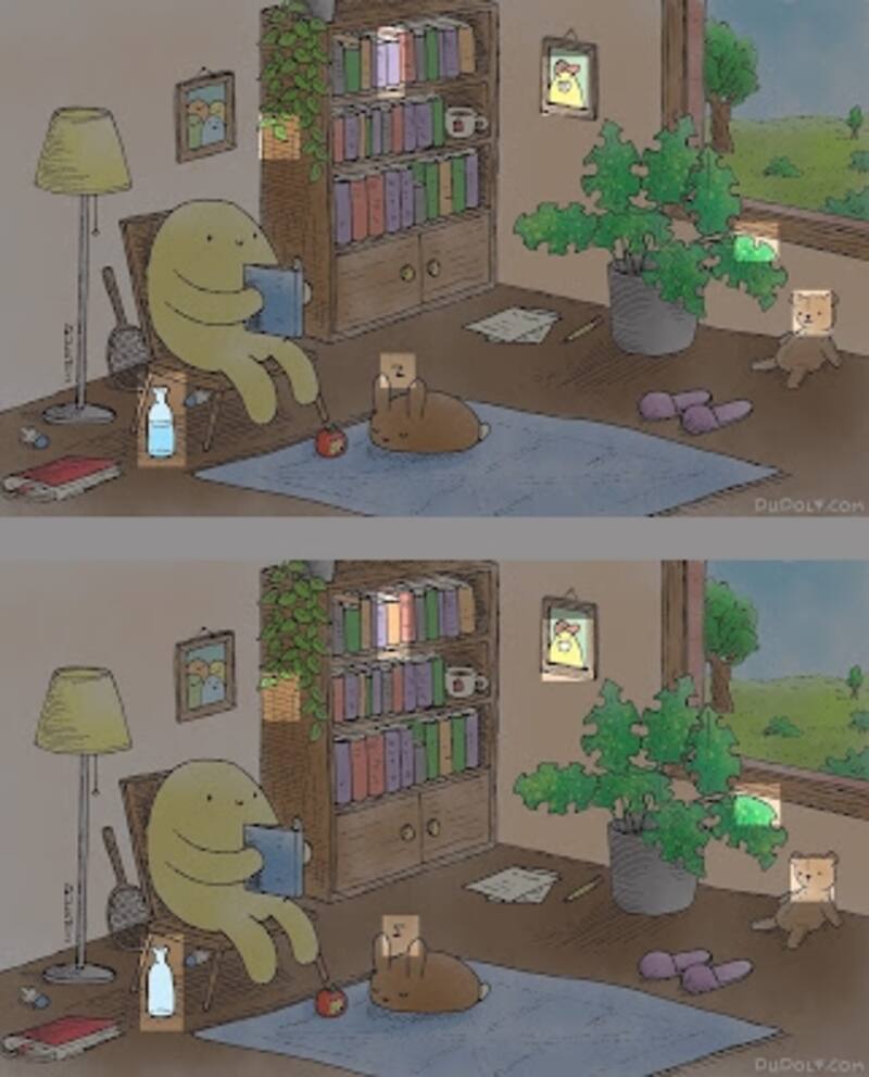 Una tarde relajada en el living de tu casa, con tu mascota durmiendo y tú leyendo un libro. ¿Te lo imaginas? Así es la escena en la que deberás encontrar 7 diferencias.