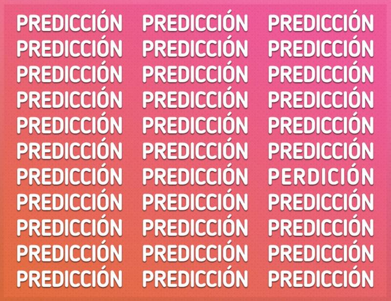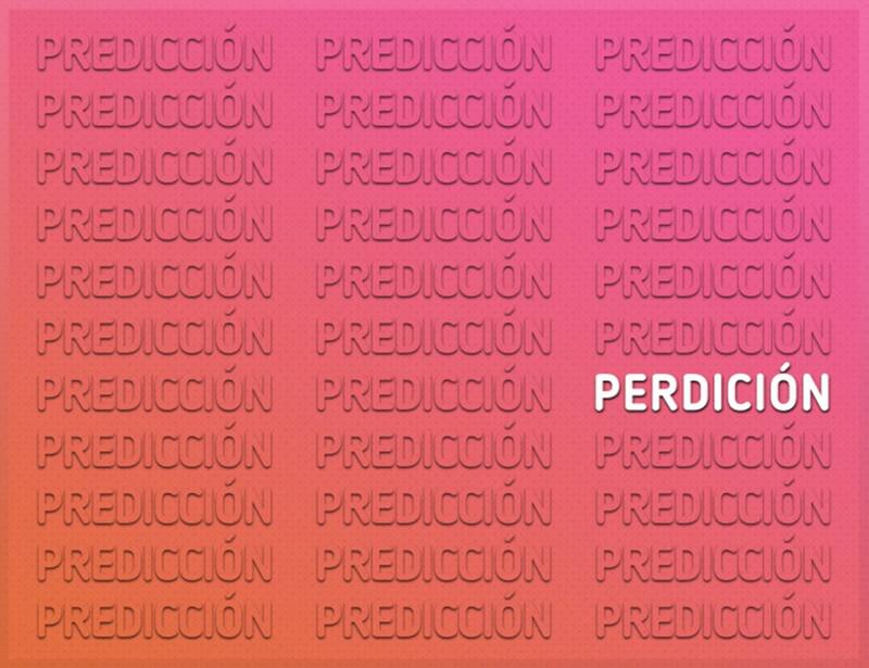 Observa detenidamente y encuentra dónde dice PERDICIÓN, en una imagen que está llena con la palabra PREDICCIÓN. A simple vista da la impresión que no está allí, pero efectivamente sí se encuentra escondida en la imagen.