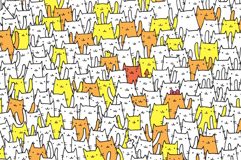 En la siguiente imagen de Gergely Dudás hay muchos gatitos, de distintos colores y haciendo distintas acciones. Sin embargo, en esta imagen hay otro animal oculto: un conejo.