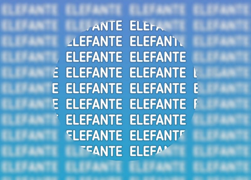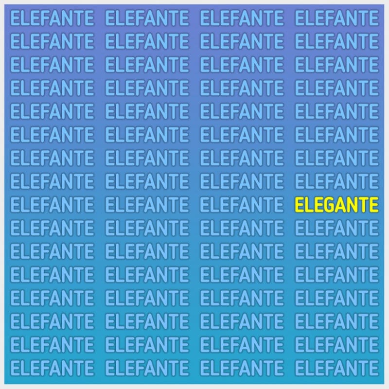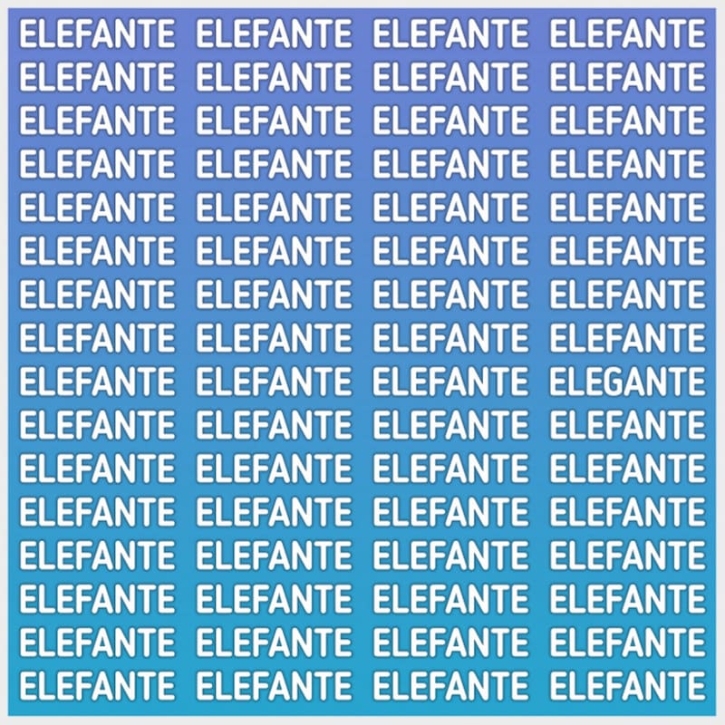 Observa detenidamente y encuentra dónde dice ELEGANTE, en una imagen que está llena con la palabra ELEFANTE. A simple vista da la impresión que no está allí, pero efectivamente sí se encuentra escondida en la imagen.