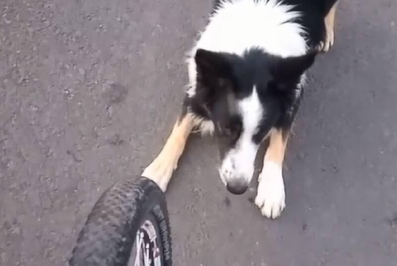 En el registro compartido por la mujer, ella relata: "Vengo en bicicleta, el perrito ahí todas las mañanas me espera, y ahora me viene a ladrar". Al acercarse al can, tal como ella indica, comienza su jugueteo.