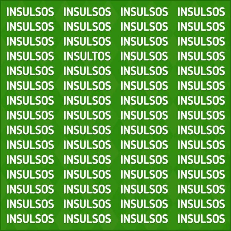 Busca dónde está la palabra INSULTOS oculta en una imagen llena de otras que dicen INSULSOS. La idea es que logres resolver este acertijo visual en 10 segundos o menos.