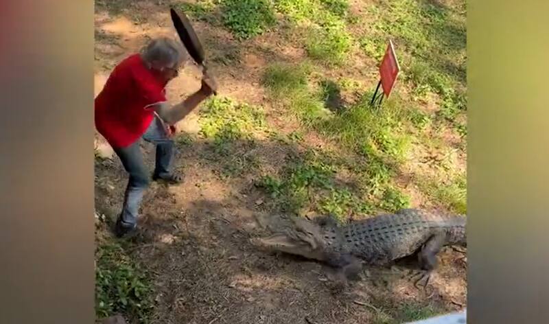 El video viral a continuación no ocurre en situaciones normal, más bien tiene hechos bastante particulares. Para comenzar un cocodrilo se acerca a un hombre de manera agresiva, algo que si bien no es común que ocurra, en los lugares donde habita este animal si lo es.
