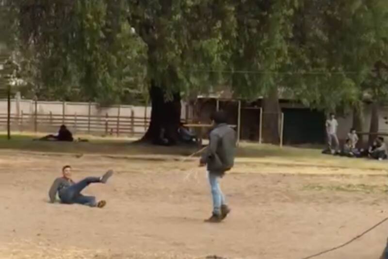 Y es que el registro muestra una forma de jugar que no muchos suelen conocer, en la que también hay que ser valientes para atreverse a participar. En el video se ven varios jóvenes con sogas esperando que un compañero corra en línea recta.