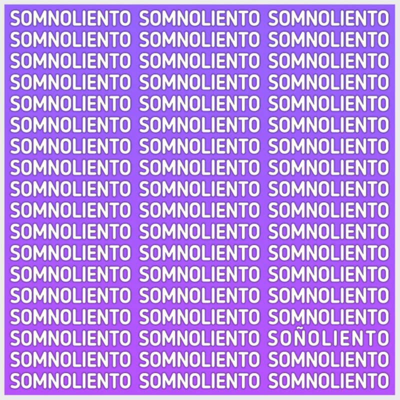 Trata de localizar donde está la palabra SOÑOLIENTO oculta en una imagen llena de otras que dicen SOMNOLIENTO. Idealmente, deberás resolver este acertijo en 8 segundos o menos.