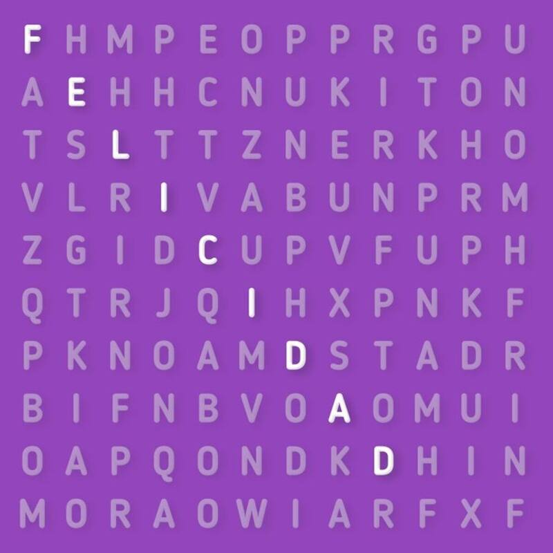 Mira detenidamente la imagen y busca dónde está la palabra "FELICIDAD" oculta en la sopa de letras. La idea es que logres resolver este acertijo visual en máximo 15 segundos. No obstante, si no encuentras la palabra en el tiempo planteado, no te preocupes, puedes tomarte los segundos o minutos que necesites. Mira aquí la imagen: