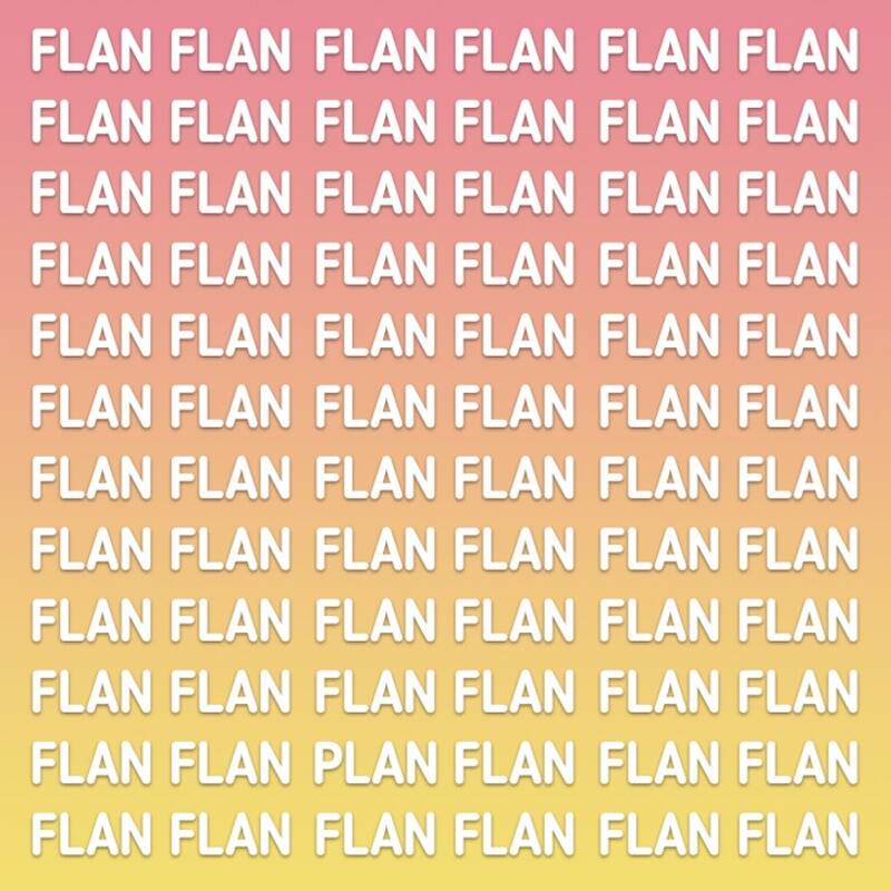 Trata de localizar donde está la palabra PLAN oculta en una imagen llena de otras que dicen FLAN. Idealmente, deberás resolver este acertijo en 5 segundos o menos.