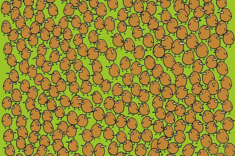 A continuación te presentaremos una acertijo que podrá a prueba tus habilidades de observación y concentración. En la imagen se ven muchas aves, pero entre ellas hay escondidos cuatro kiwis.