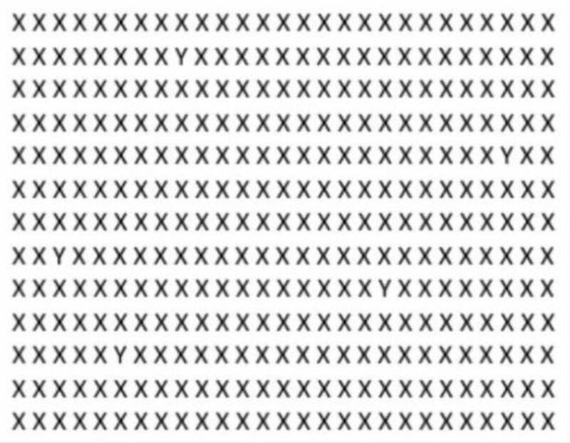 Acertijo visual: ¿Puedes encontrar las cinco "Y" entre todas las "X" en tan solo 15 segundos?