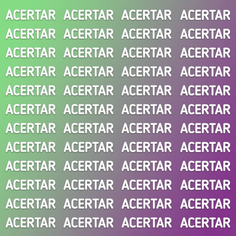 Intenta encontrar donde está la palabra ACEPTAR oculta en una imagen llena de otras que dicen ACERTAR. Idealmente, deberás resolver este acertijo en 7 segundos o menos.