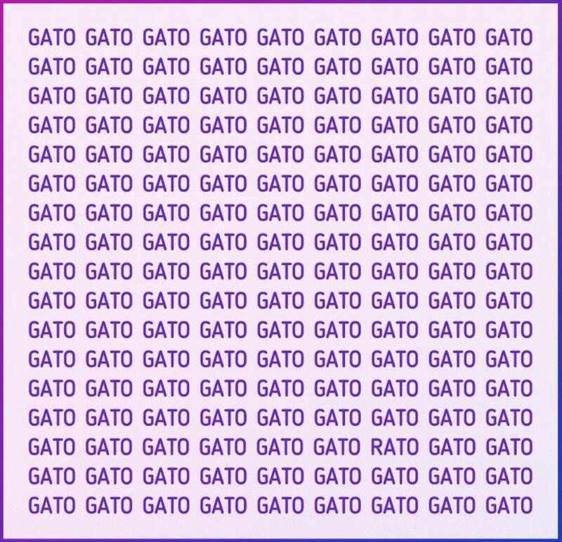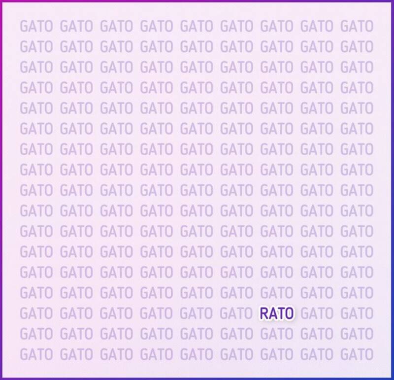 Mira la imagen y busca dónde está la palabra diferente al resto. Pareciera que todas son iguales, sin embargo, efectivamente hay una que no dice GATO.
