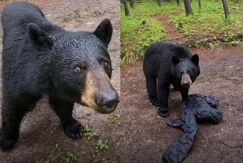 "Sobreviví a mi primer encuentro con un oso sin un spray contra osos", escribió el usuario en el video.