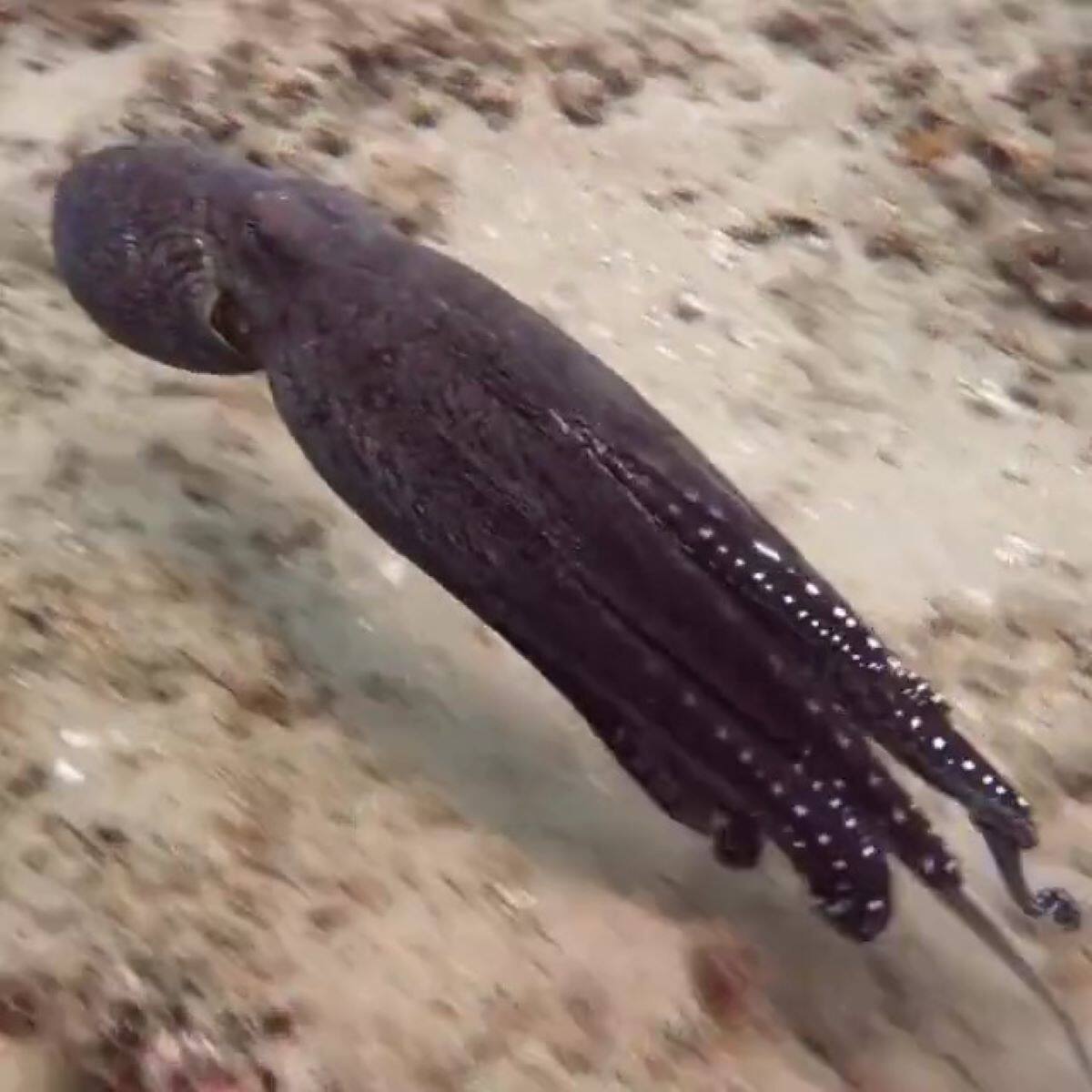 El registro pertenece a Nick Ruberg y fue difundido en la red social por @worderofscience. En el video se aprecia el seguimiento de un pulpo, quien intenta camuflarse cambiando a una tonalidad morada, aunque finalmente decide ingresar a un agujero.