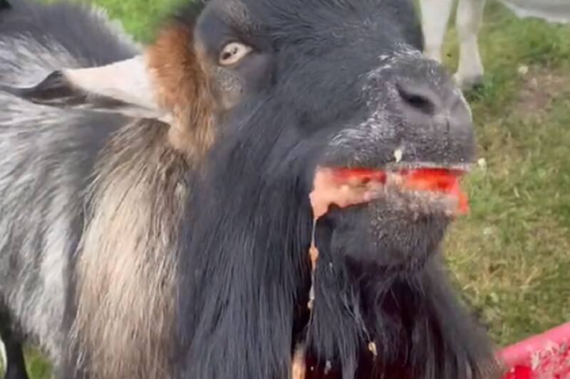 El registro de @ryleeranch comienza diciendo que el menú para hoy es una gran carretilla de tomates, para luego mostrar cómo sus cabras comen sus tomates uno a uno, generando además un ASMR que es imposible recrear.