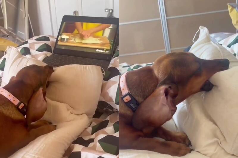 Esto porque se puede apreciar a un perrito mirando un video de cocina en que la cocinera se encuentra amasando, esto genera que el perro utilice la misma técnica para amasar un cojín.