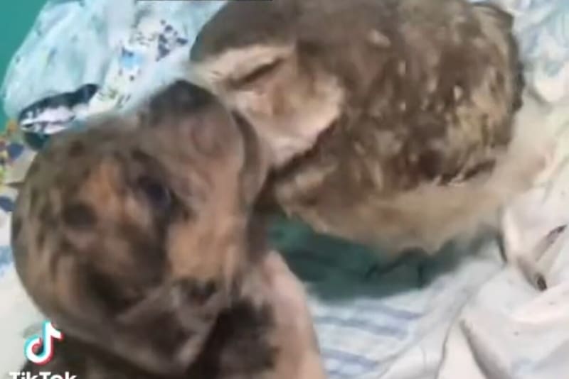 Viral se hizo en redes sociales una tierna y épica pelea entre "hermanos": el video muestra un aparente búho enfrentándose contra un perro bebé.