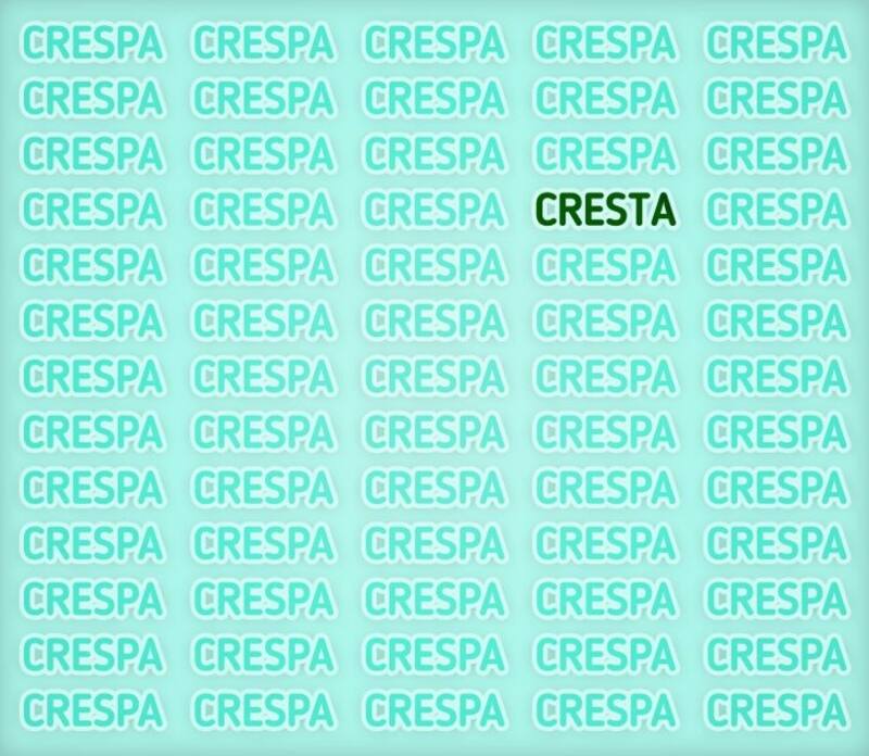 Si observan bien la imagen, en la cuarta fila de izquierda a derecha y la cuarta palabra de arriba hacia abajo te darás cuenta que la palabra "CRESPA tiene una T, la que hace totalmente diferente el significado de ella, cambiandolo por "CRESTA". Observa la imagen a continuación.