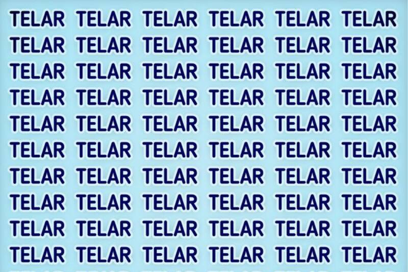 Mira la imagen con mucha detención e intenta descubrir dónde está ubicada la palabra diferente a todas las demás que dicen "TELAR". No te dejes vencer y mira cada una de las letras donde encontrarás la diferente.