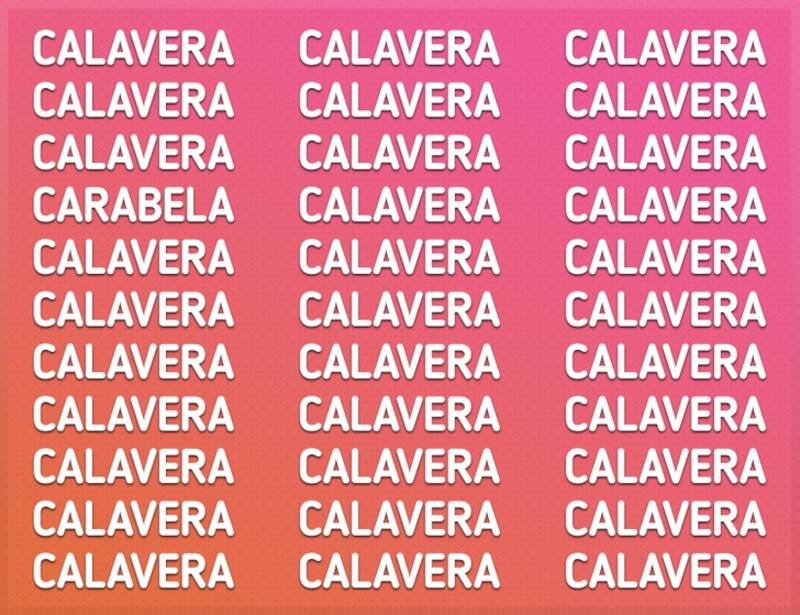 Intenta localizar donde está la palabra CARABELA oculta en una imagen llena de otras que dicen CALAVERA. Idealmente, deberás resolver este acertijo en 10 segundos o menos.