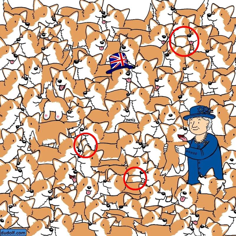 Test Visual: Encuentra los tres panes ocultos entre los corgis de la reina en menos de 30 segundos