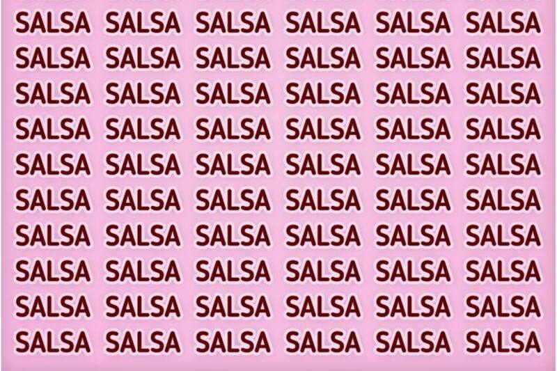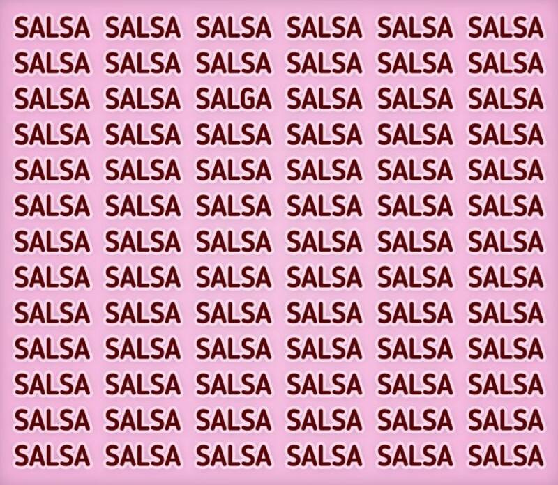 En la imagen que encontrarás a continuación puedes ver de forma repetida la palabra "salsa", sin embargo, una de ellas tiene una letra diferente que cambia todo el sentido de la frase.