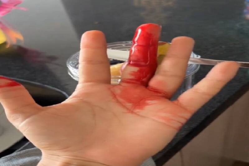 Incluso hoy mostró que se cortó un dedo al intentar hacer un licuado, ya que la mujer no sabe cocinar.
