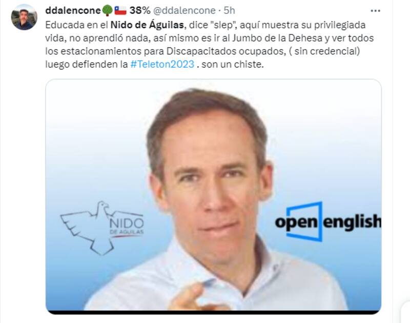 “Venimos a pedirles acciones, detenga la implementación de los SLEP. SLEP en inglés significa dormir”, expresó. La comparación causó una inmediata reacción en Twitter donde miles de usuarios se refirieron al hecho.