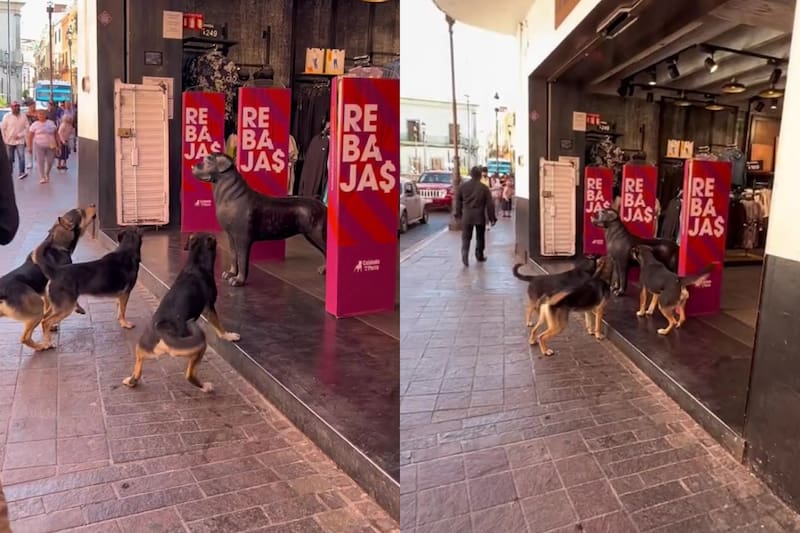 Los animales aparecen en un video viral, que circula a través de la red social TikTok, ladrando a la escultura de un perro, con la intención de enfrentarse a él.
