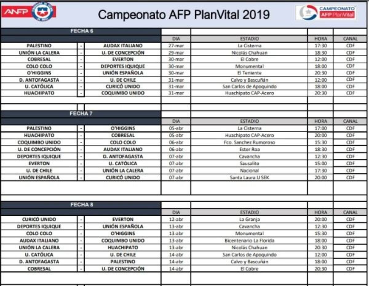 tiene tres salidas complicadas 6 de abril visitará a Coquimbo Unido, el 20 de abril viajará a Talcahuano para enfrentar a Huachipato y el 5 de mayo viajará la Quinta Región para enfrentar a Unión La Calera. Revisa a continuación de la fecha 6 a la 12: