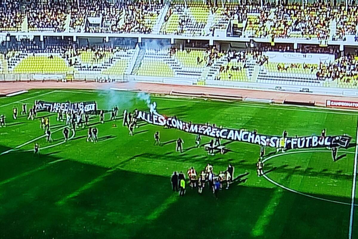 Con fuegos artificiales, los hinchas pasaron la barrera del Estadio Francisco Sánchez Rumoroso portando lienzos con frases como “Calles con sangre, canchas sin fútbol”, impidiendo que se desarrollara el partido. Los hinchas impidieron que se desarrollara el partido, enfrentando a guardias de seguridad e incluso rompiendo la cabina del VAR. Los jugadores, en tanto, se retiraron de la cancha para proteger su integridad. Los hinchas, tanto de Coquimbo y Audax Italiano, se dividieron entre quiénes apoyaban la manifestación y quienes repudiaban la acción de quienes invadieron la cancha. Hasta ahora, no se ha determinado si se suspende el partido.