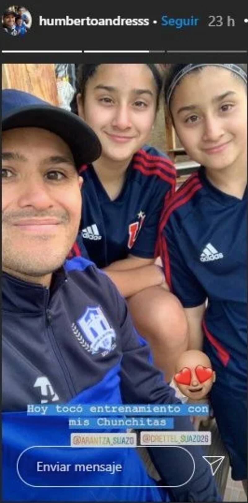 "Hoy tocó entrenamiento con mis chunchitas", publicó el ex goleador de la Roja en su cuenta de Instagram, donde sus dos hijas aparecen con la indumentaria de la U.