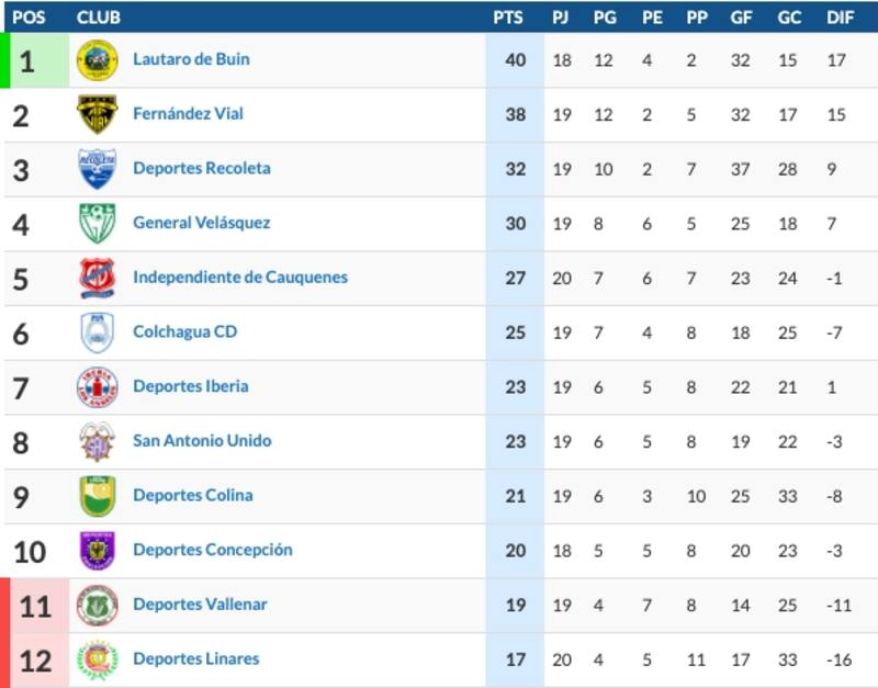 Con la derrota, Fernández Vial se mantuvo en el segundo puesto de la Tabla de Posiciones de la Segunda División con 38 unidades, dos puntos menos que Lautaro de Buin, líder absoluto de la competición.