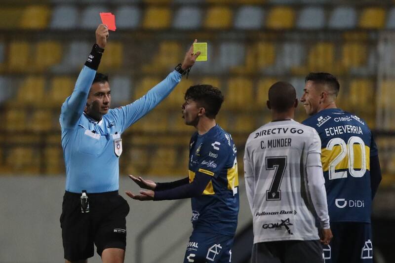 Los reclamos no fueron atendidos por el silbante, lo que provocó la molestia de Echeverría quien gritó a viva voz en contra del cuerpo arbitral. "Que malos que son. Son un desastre", fueron las palabras que dijo el volante, las que fueron escuchadas por Ahumada, quien le mostró la cartulina roja directa.
