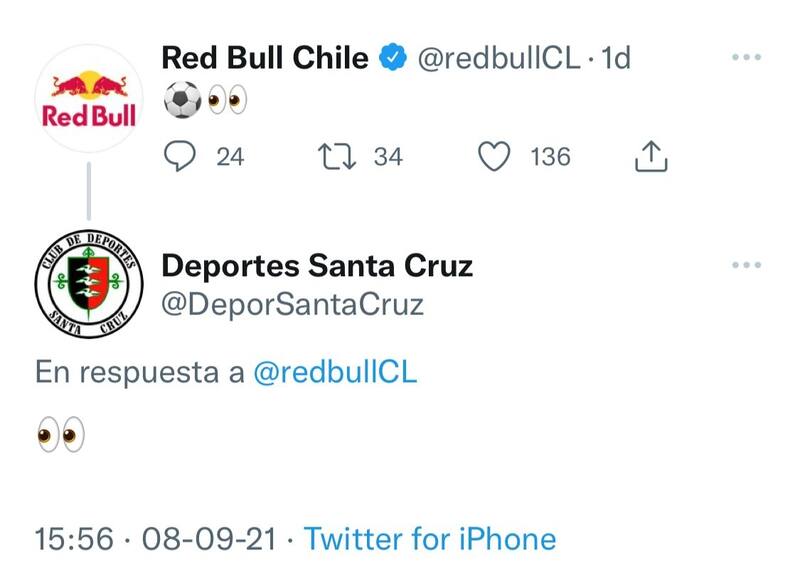 Y pronto podrían unirse nuevos clubes a esta franquicia, incluso algún chileno tendría opciones. Esto porque Deportes Santa Cruz "coqueteó" con la filial de la bebida energética en Chile, cruzando emoticones en un hilo de Twitter.