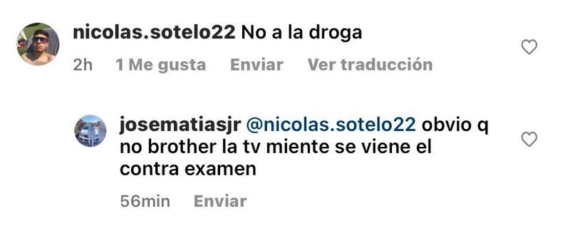 Luego que la noticia se masificara, fue el propio jugador quien se refirió a este tema por medio de redes sociales. Un usuario en Instagram le comentó una publicación. "No a las drogas", expuso.
