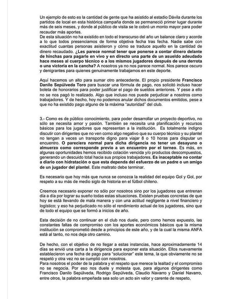 En total son 4 puntos los que reclaman los entrenadores. Entregan detalles importantes en cada uno de ellos y dejan al descubierto severas irregularidades en el manejo de la institución.